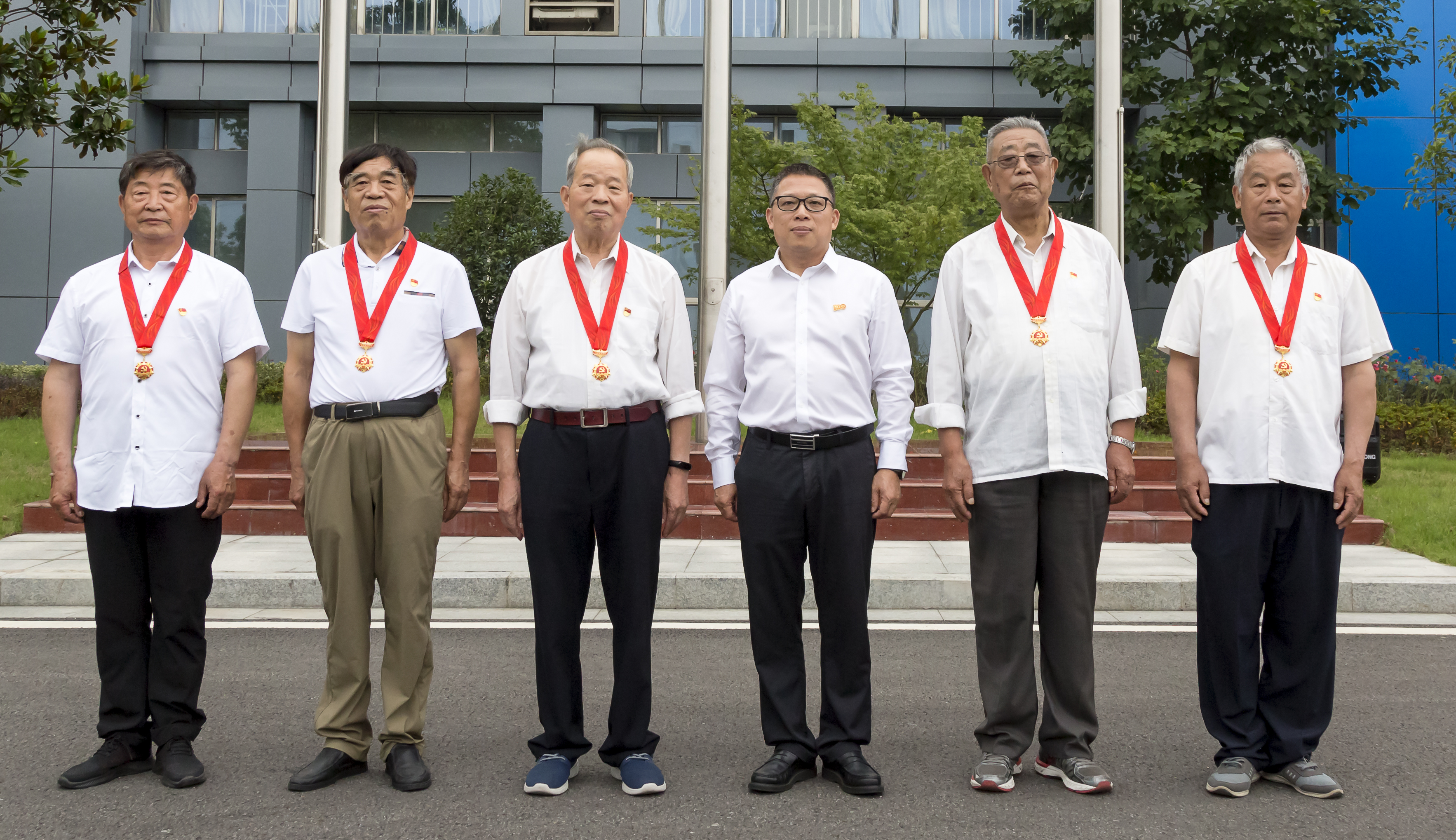 队党委书记、队长陈哲为党龄达到50周年的老党员代表颁发“光荣在党50年”纪念章,感谢以他们为代表的老党员们为党的事业、为祖国强大、为江苏核地质事业作出的不可磨灭的贡献!