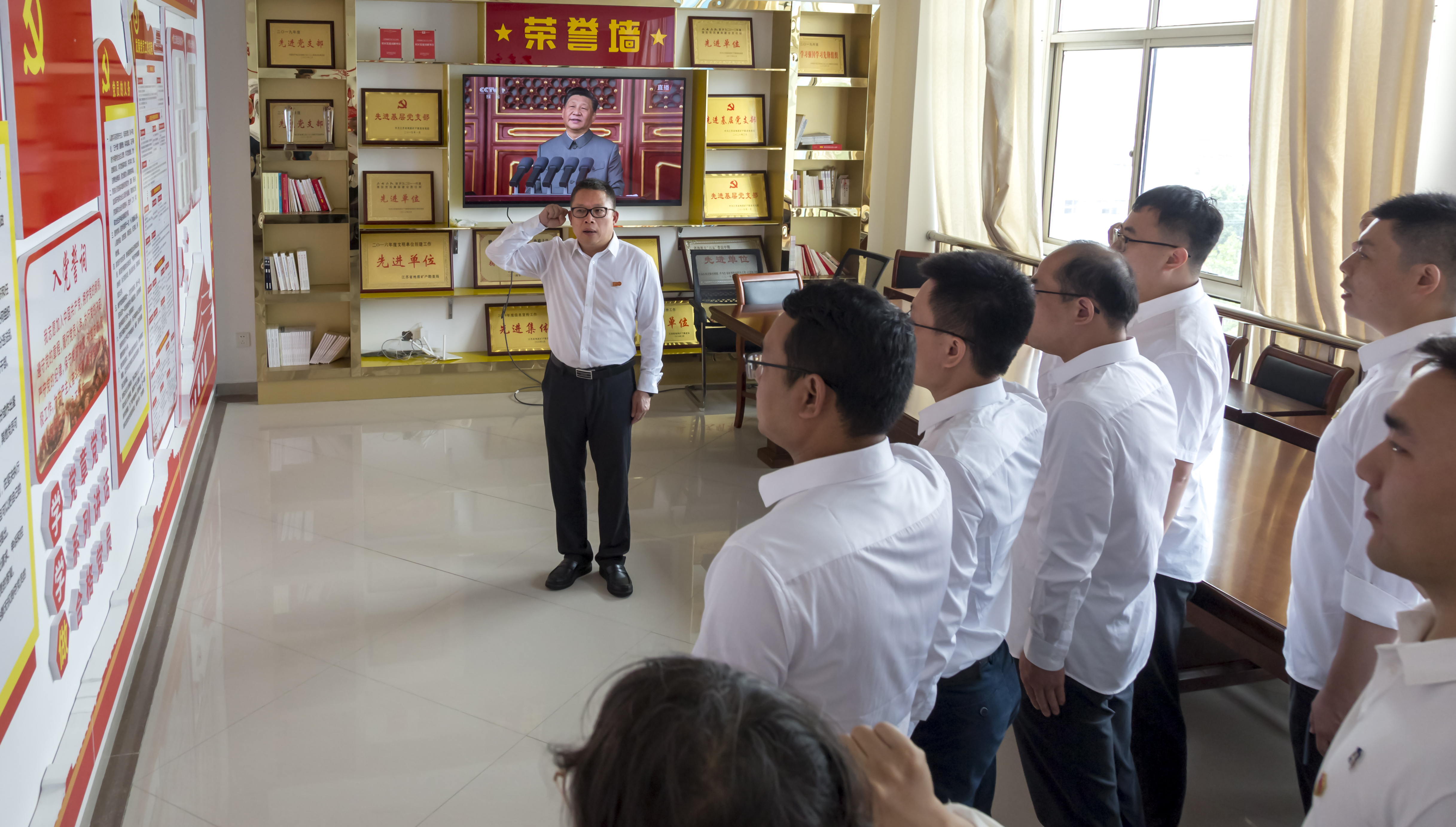 在中国共产党百年华诞之际,2021年7月1日,二七二队组织7名新党员在江宁基地党员之家,在大队党委书记陈哲的带领下,面对鲜艳的党旗庄严宣誓。
