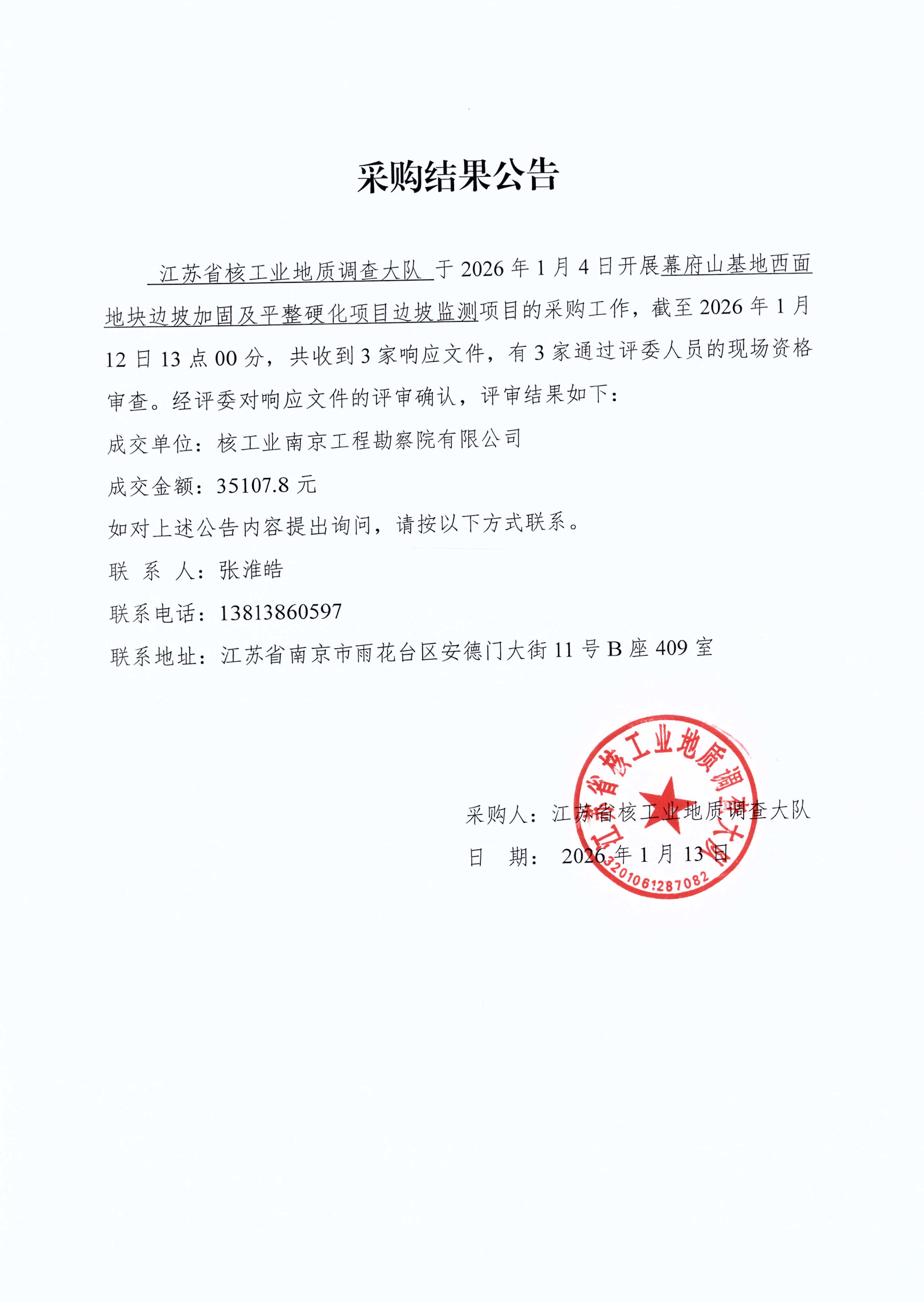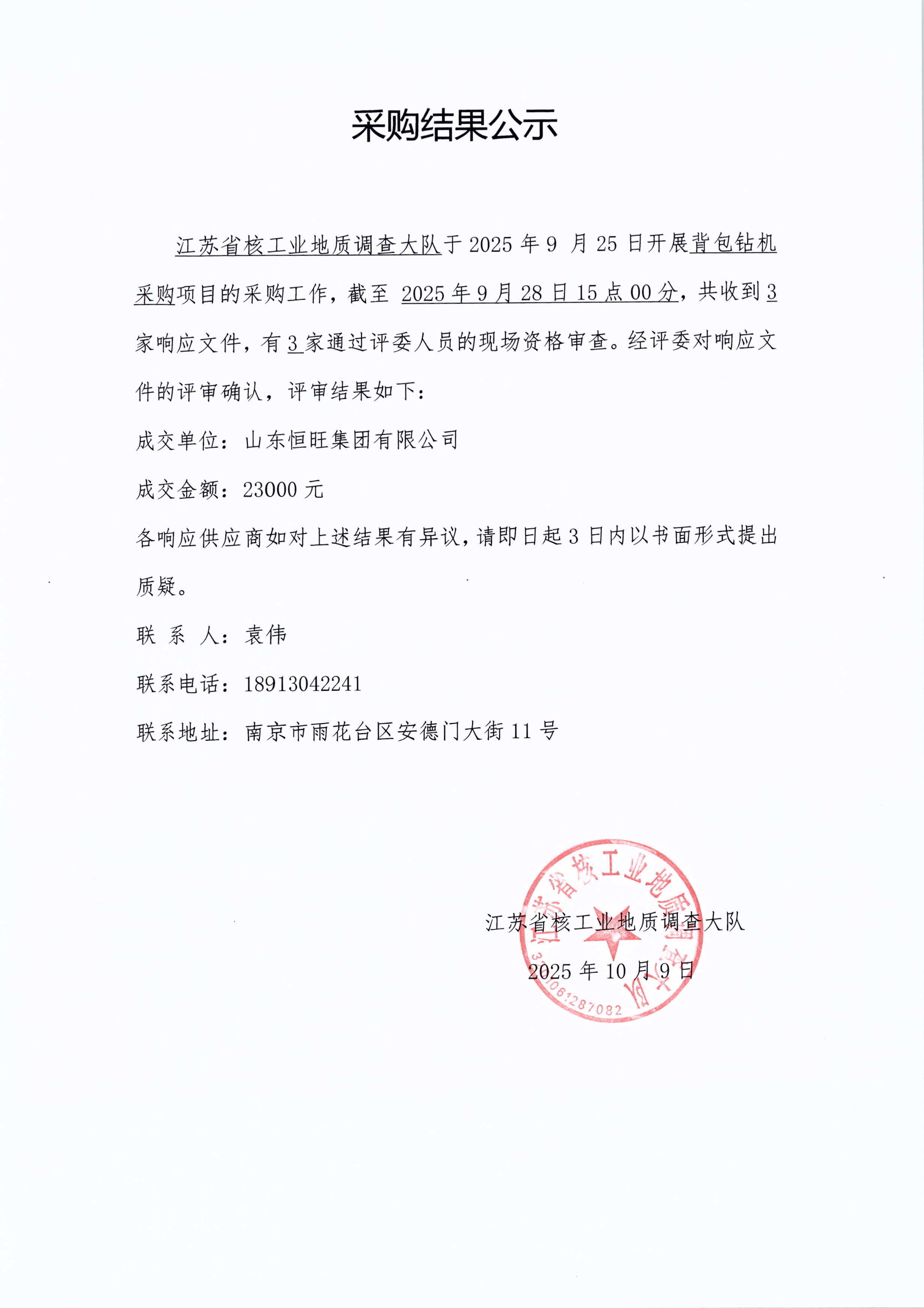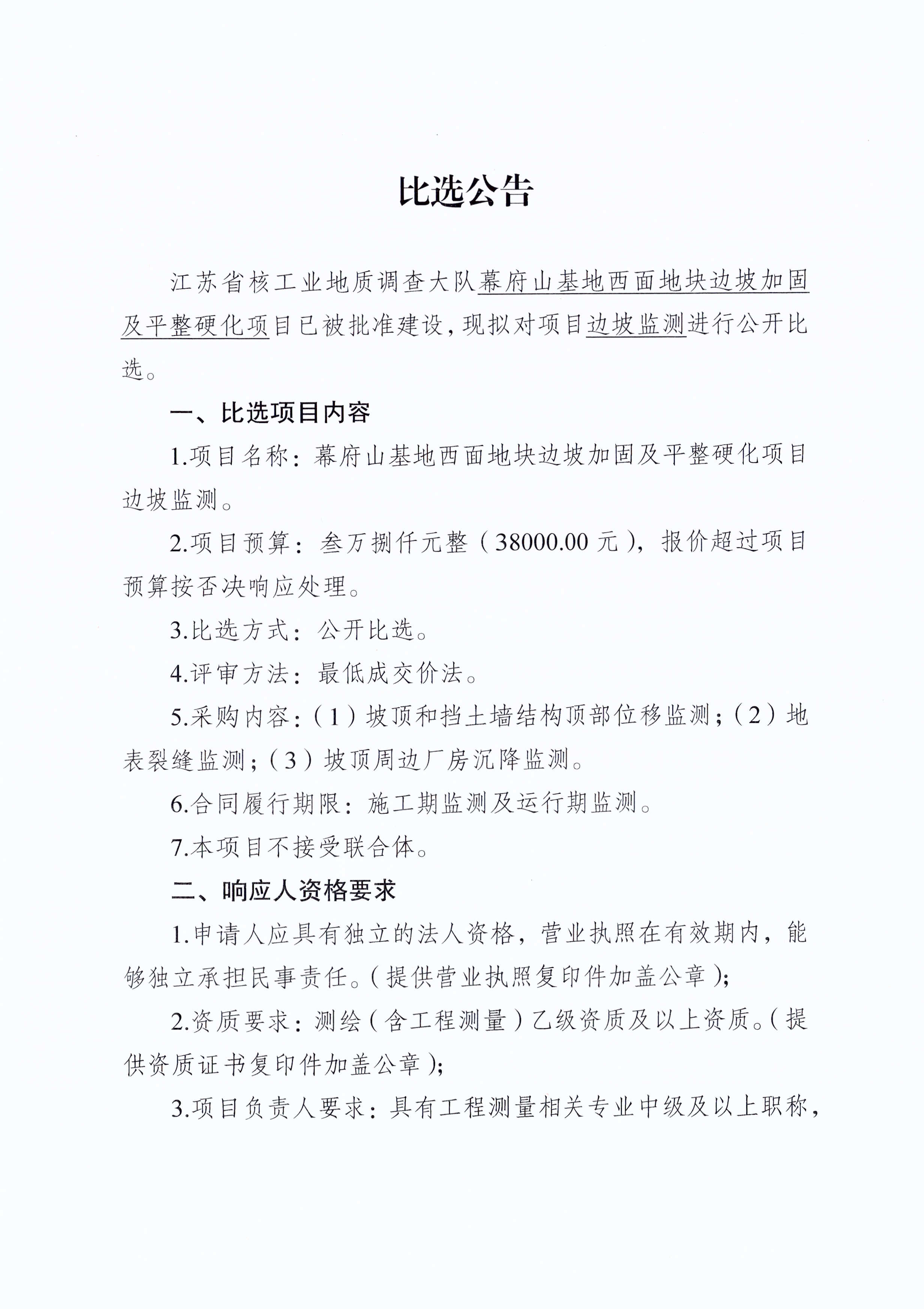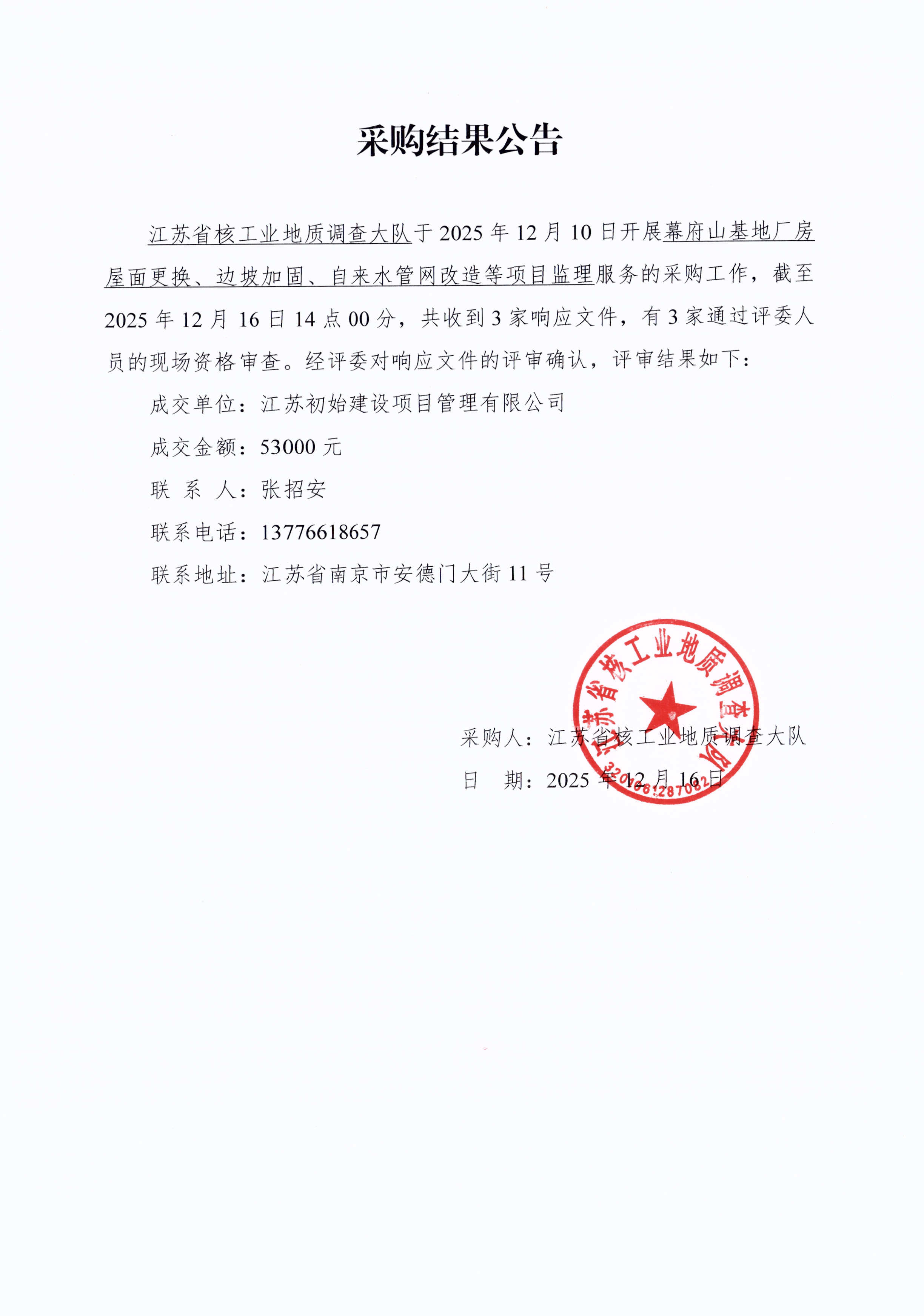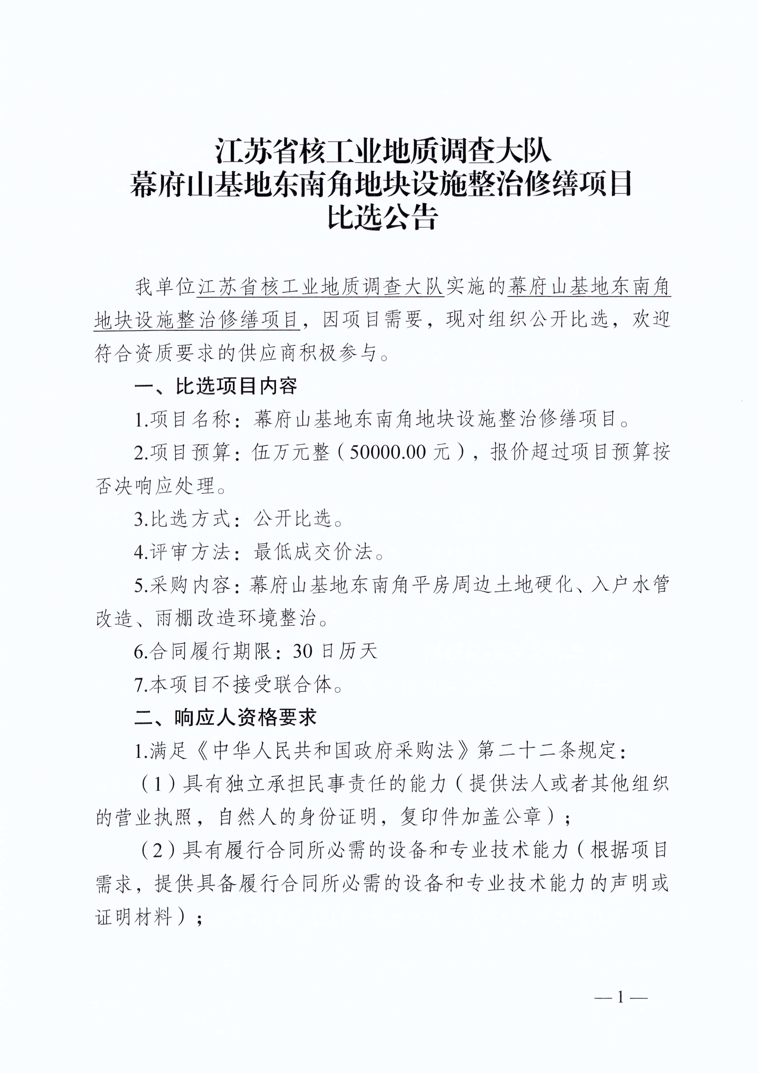 幕府山基地东南角新建围墙项目中标公告江苏省核工业地质调查大队幕府山基地东南角新建...……