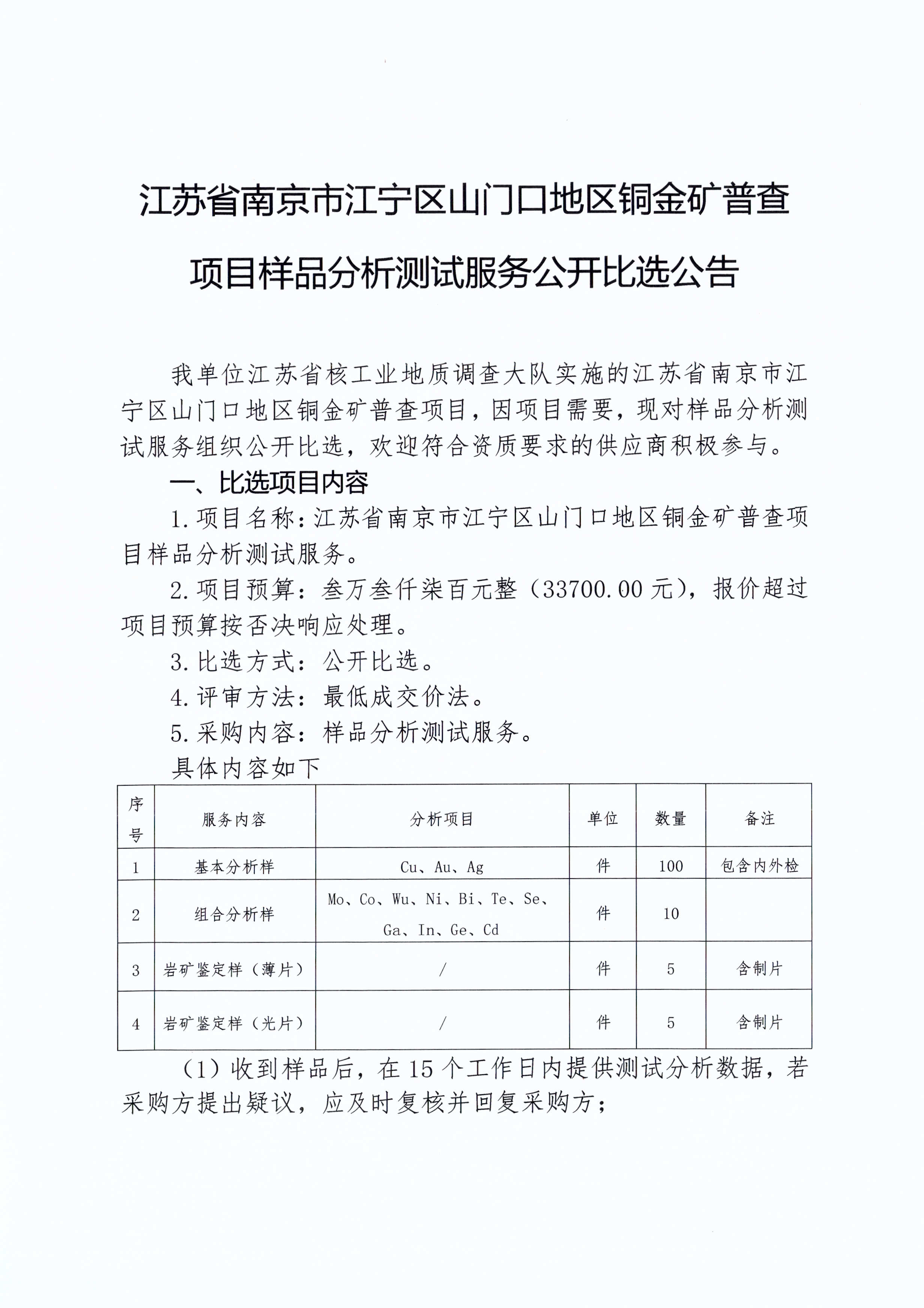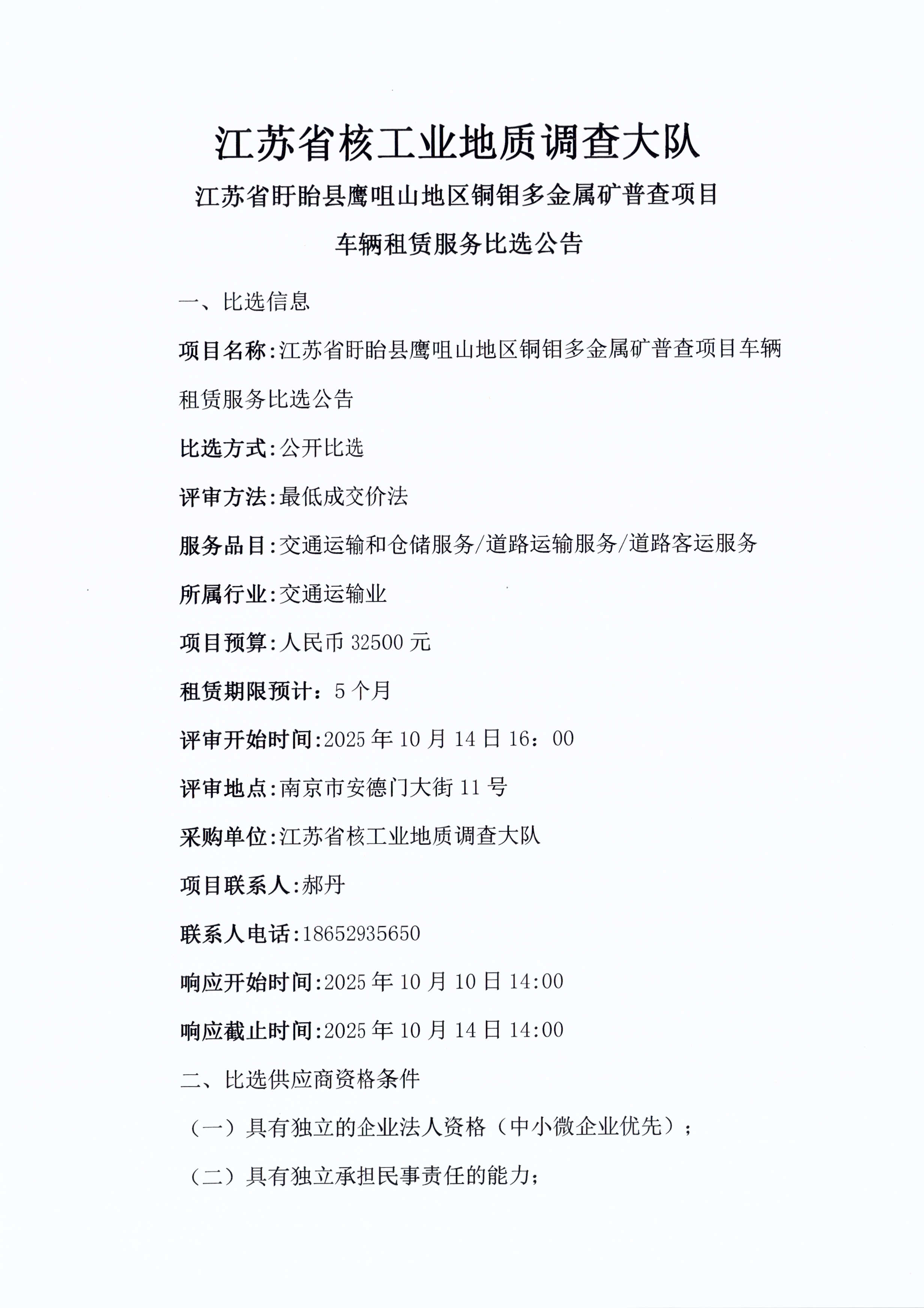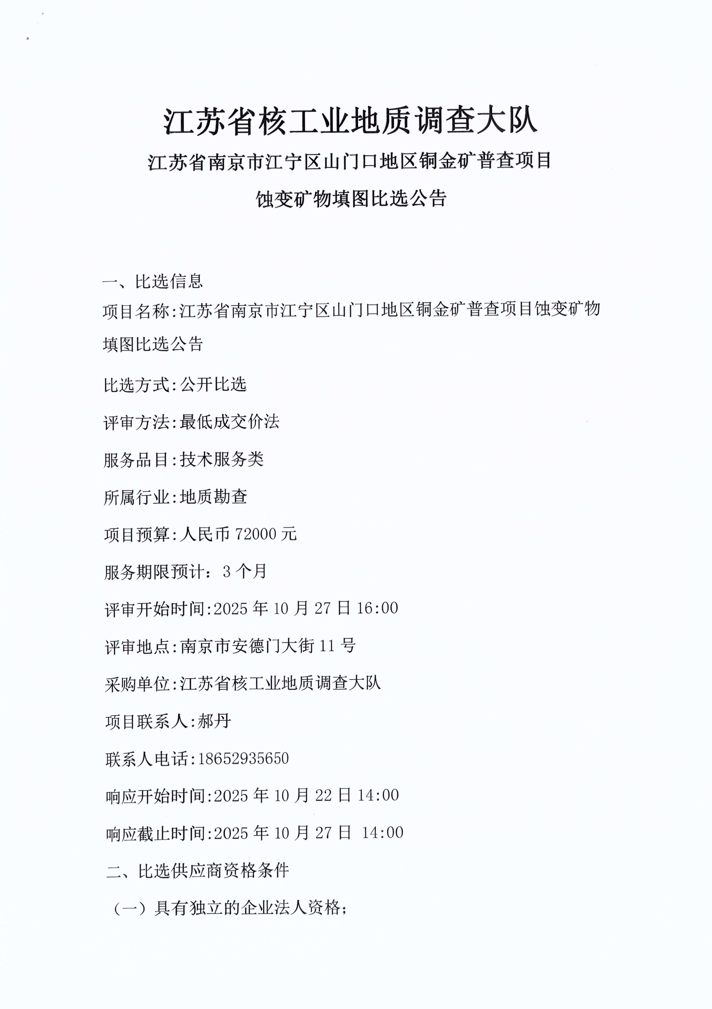 江苏省核工业地质调查大队江苏省南京市江宁区山门口地区铜金矿普查项目2025年度车...……