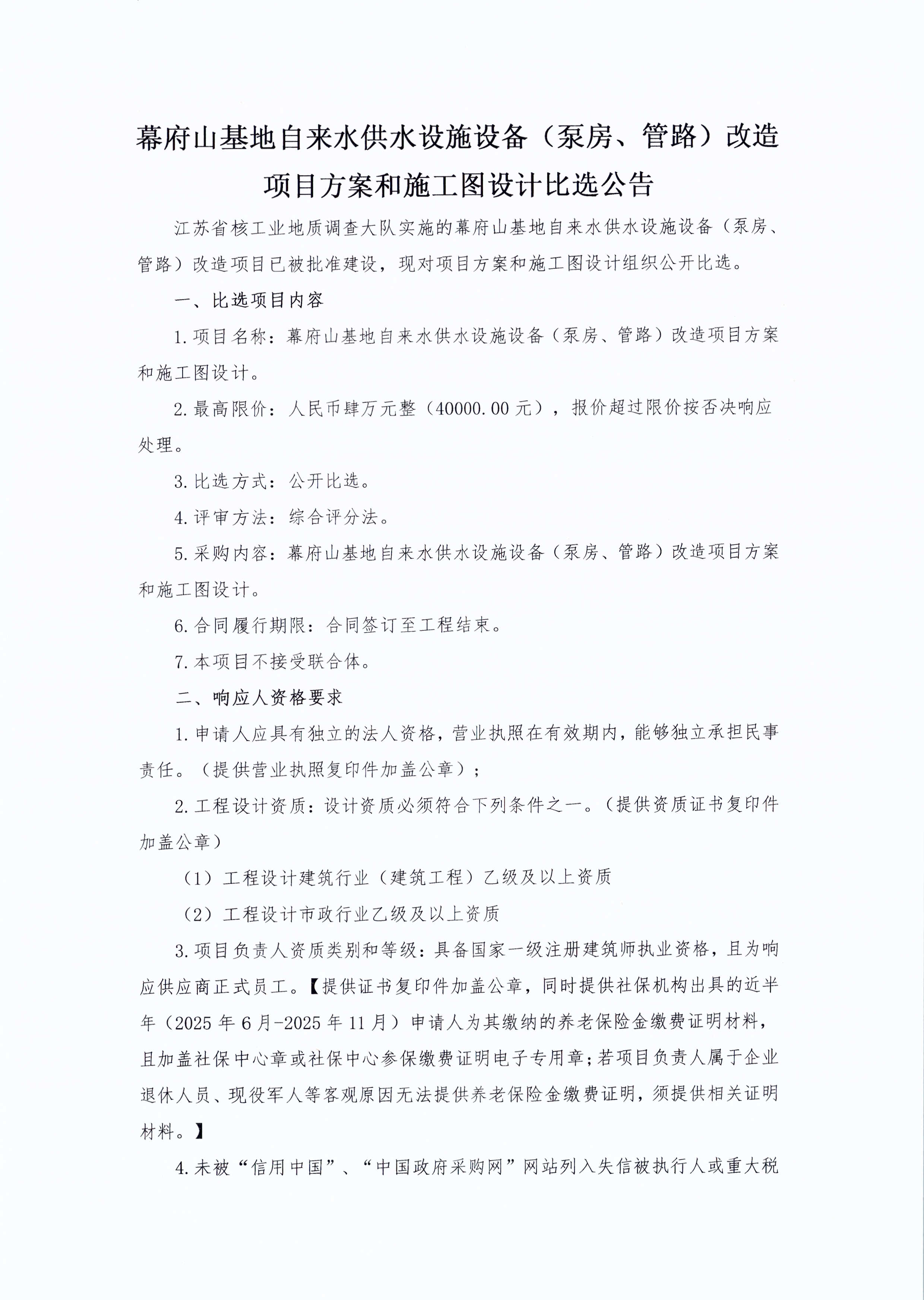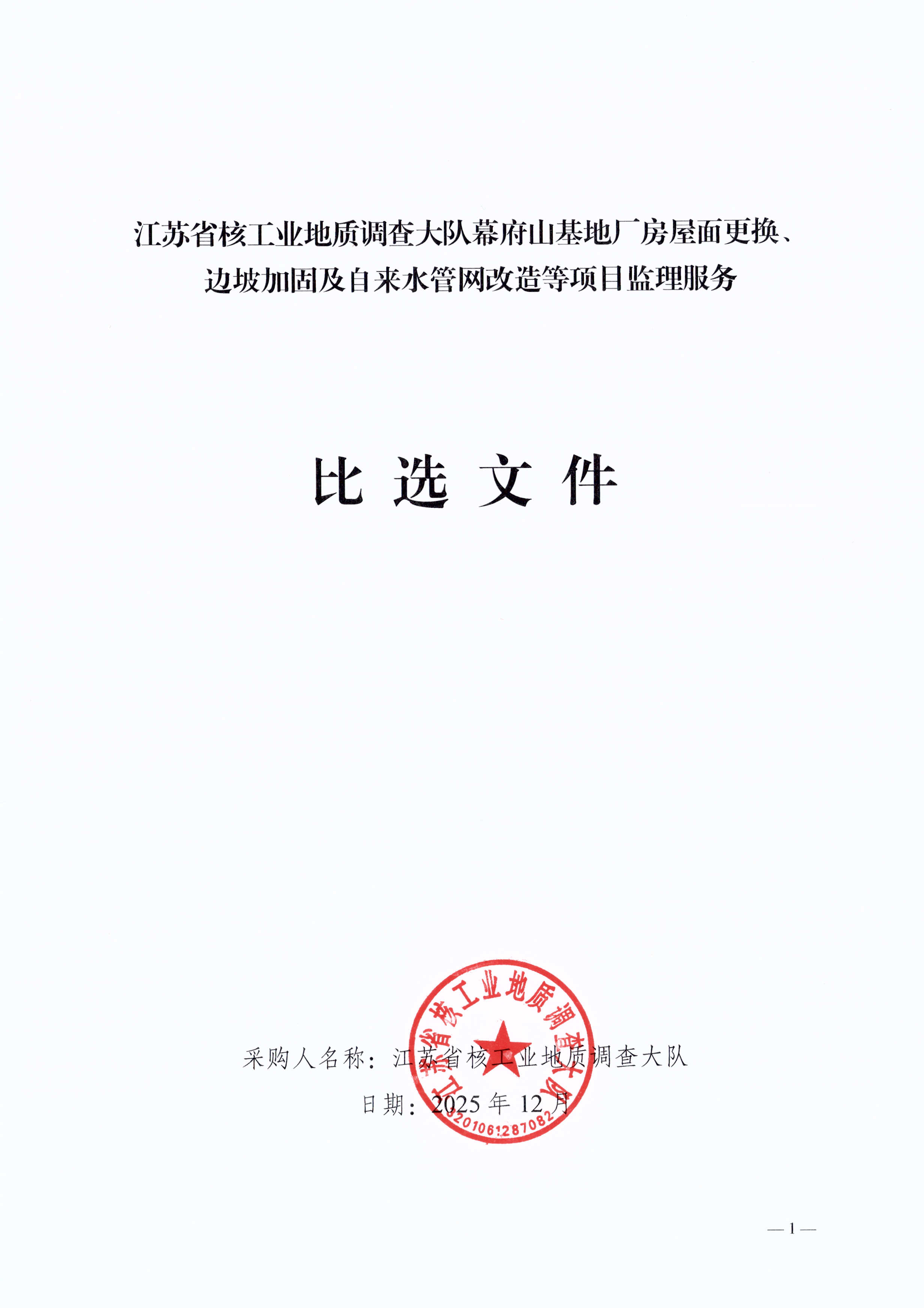 监理服务公开比选幕府山基地厂房屋面更换、边坡加固、自来水管网改造等项目(发布)....……